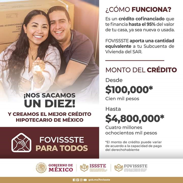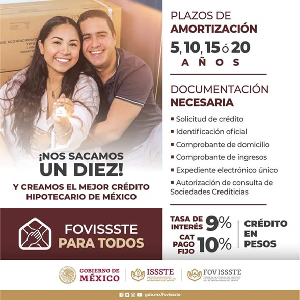 El Fondo de la Vivienda del ISSSTE (FOVISSSTE) es un organismo que otorga créditos hipotecarios a los trabajadores al servicio del Estado, con el objetivo de facilitarles la adquisición, construcción, remodelación o mejora de su vivienda.